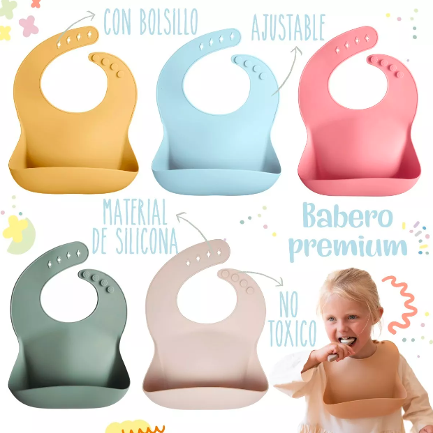 ¡La hora de la comida nunca fue tan práctica! Este babero está hecho de silicón suave, libre de BPA y 100% seguro para tu bebé, diseñado para facilitar la alimentación y mantener la ropa limpia.