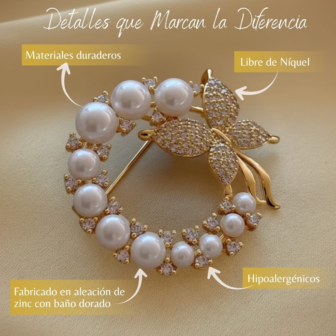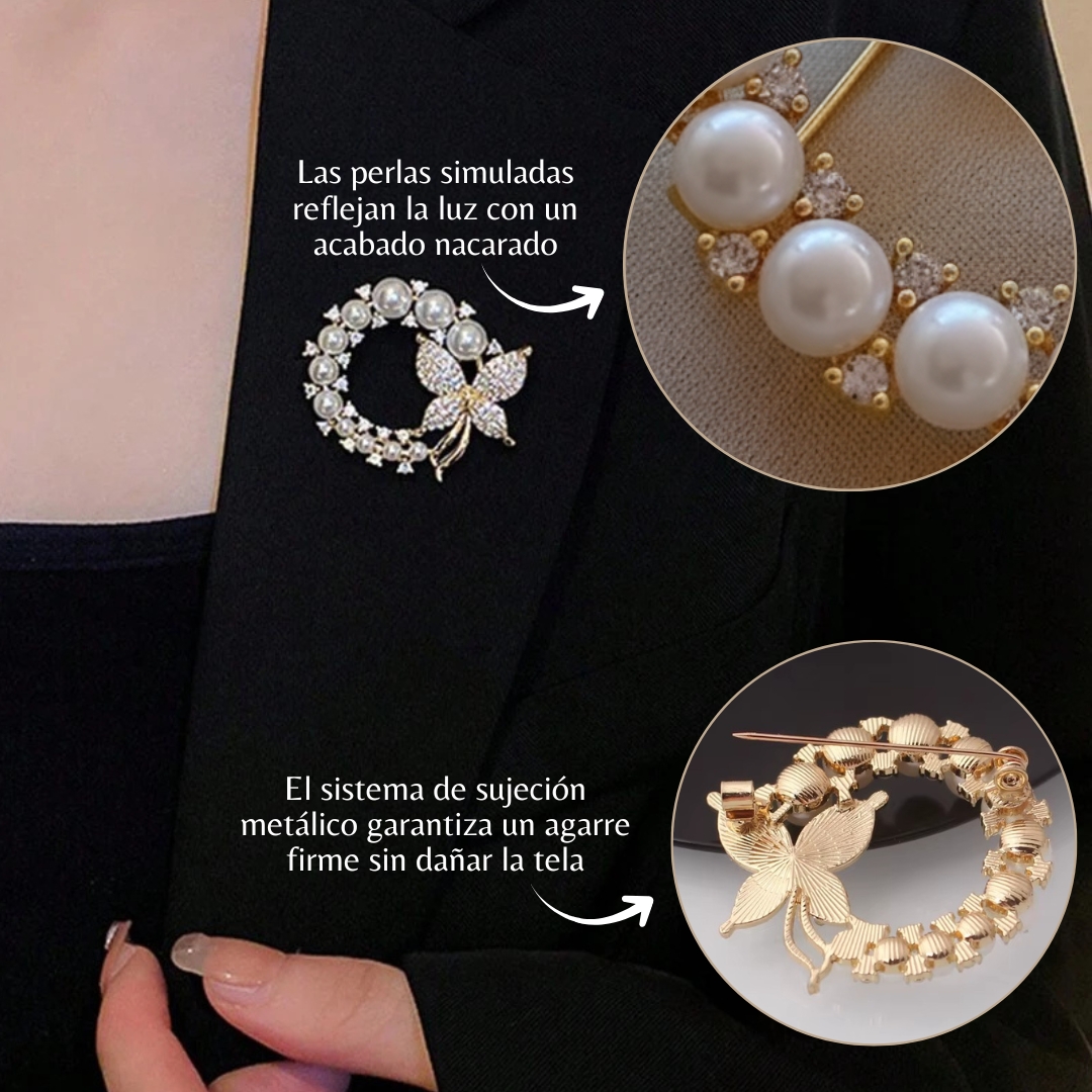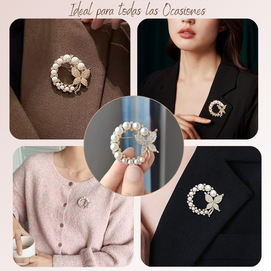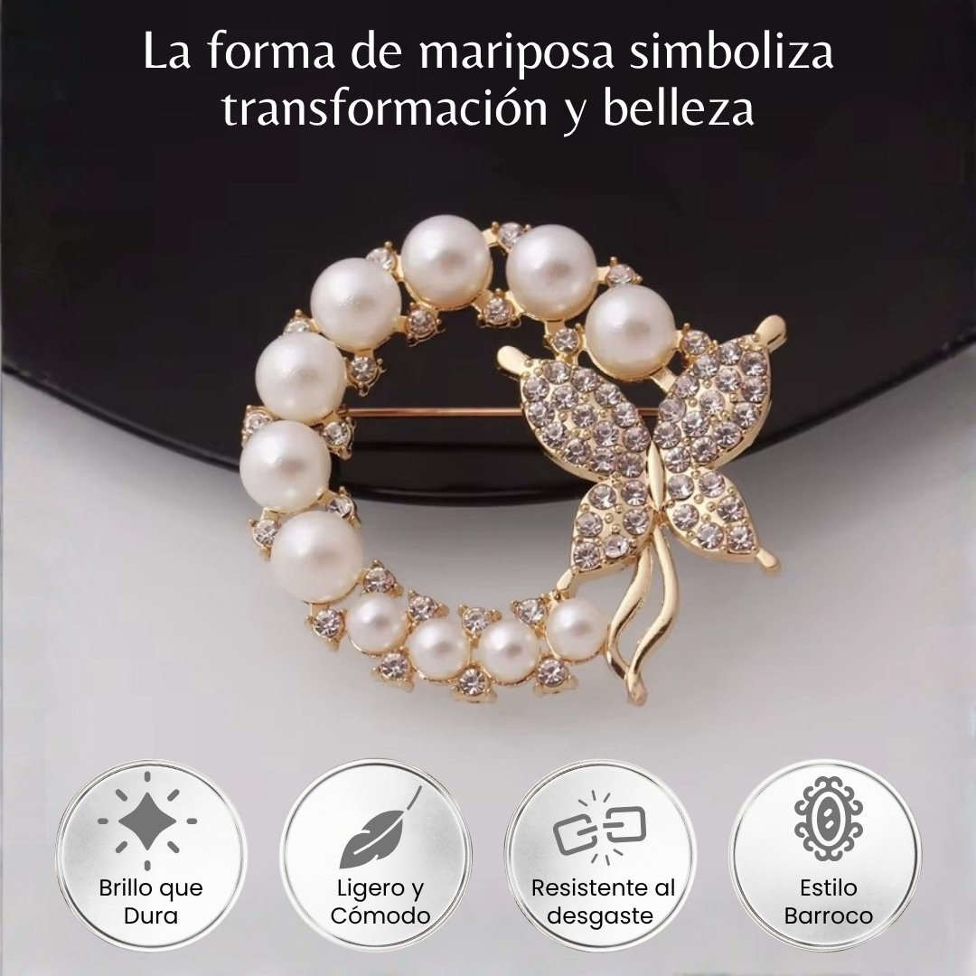 Brilla con estilo y distinción con este broche de mariposa de inspiración barroca, diseñado para mujeres que aman los detalles refinados. Su acabado dorado, perlas integradas y diamantes de imitación lo convierten en el accesorio perfecto para transformar cualquier atuendo en un look sofisticado, moderno y lleno de encanto. Ideal para regalar o realzar tus outfits con un toque clásico y elegante.