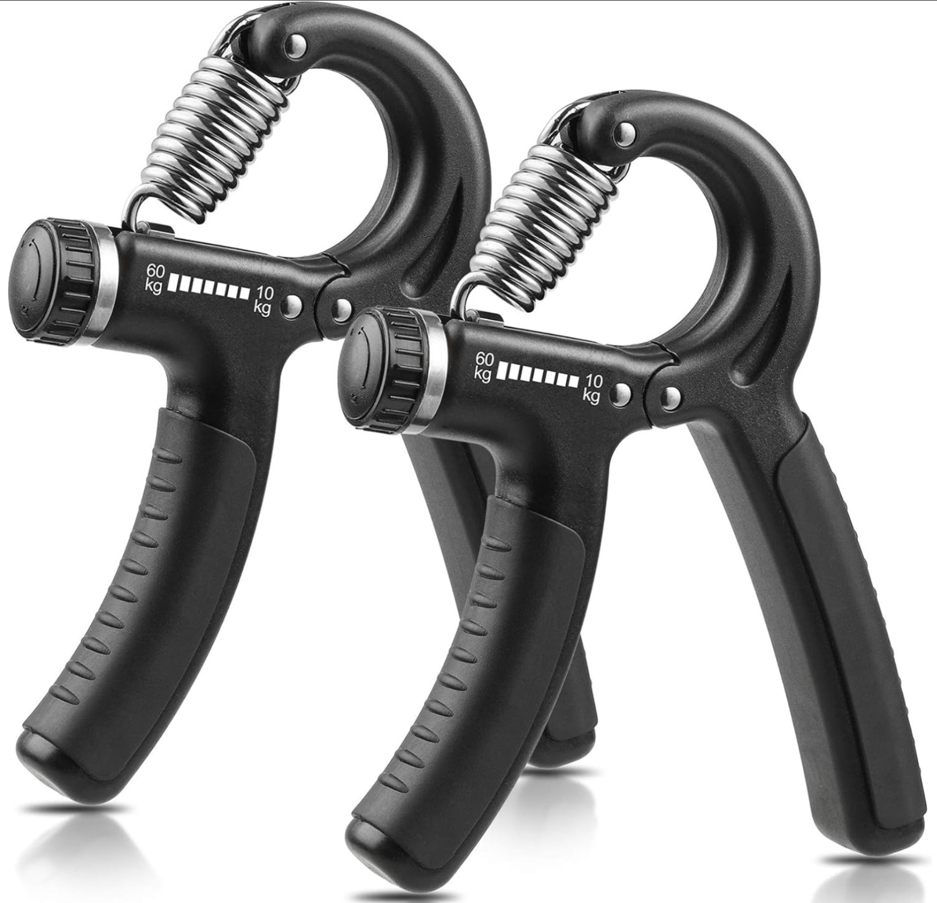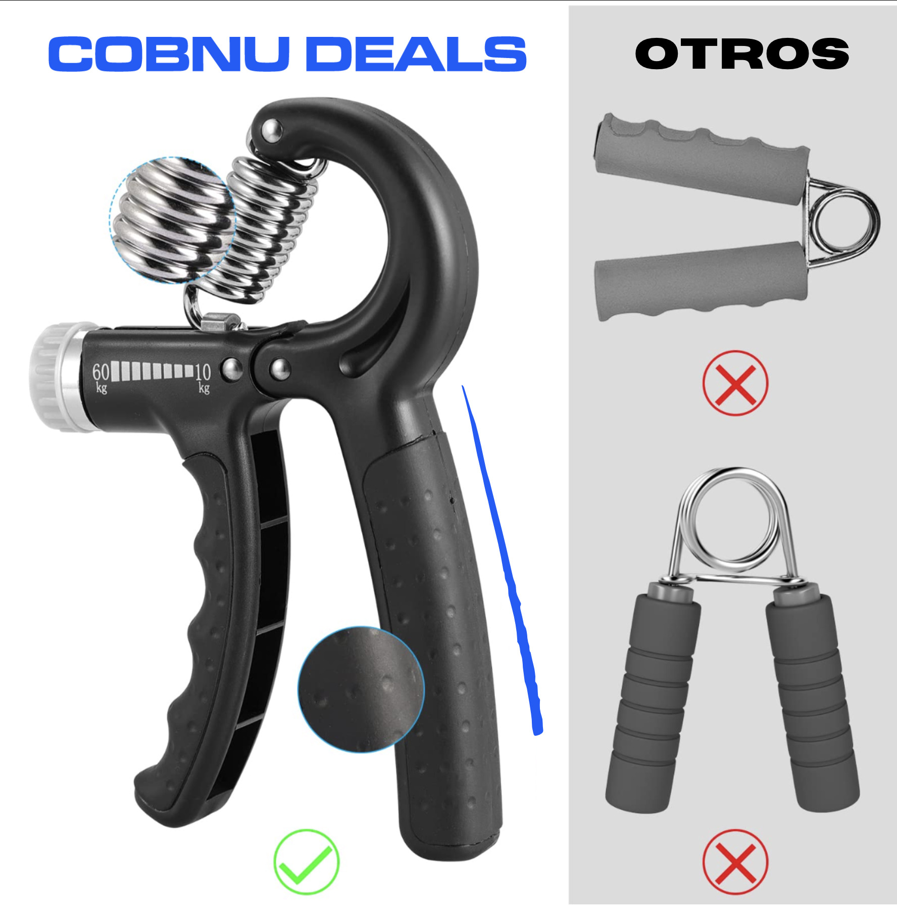 Fortalece tu agarre, mejora tu resistencia y entrena desde cualquier lugar con este combo de 2 ejercitadores de manos regulables.