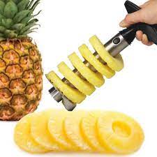- El cortador de piñas , elaborado en acero inoxidable, extrae la pulpa como si fuera un sacacorchos y la corta en rodajas perfectas.