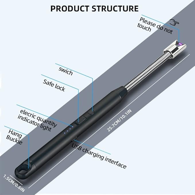Protección infantil: Tiene una función de protección infantil. Necesitas encender el interruptor de encendido antes de que puedas encenderlo, el encendedor de velas cortará automáticamente la energía durante 8 segundos. El encendedor USB con protección contra sobrecarga, protección contra sobretensión y protección de temperatura, puede prolongar la vida útil de la batería.