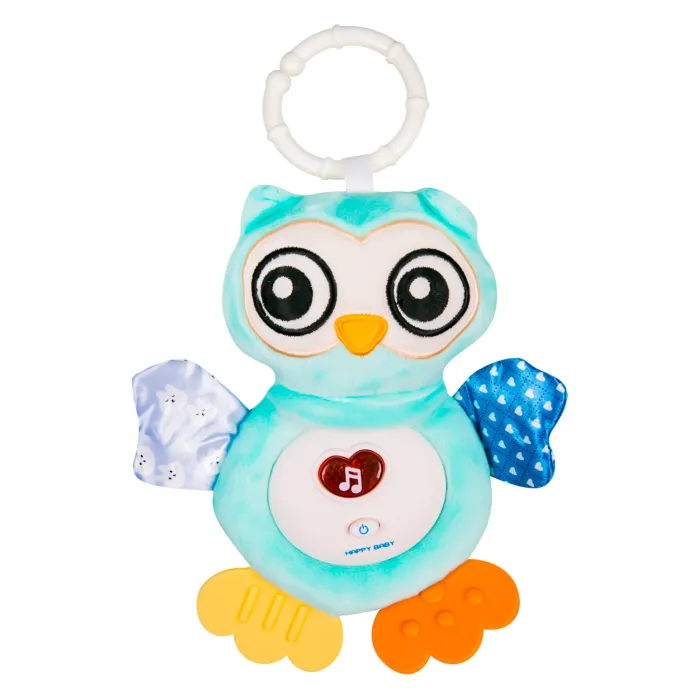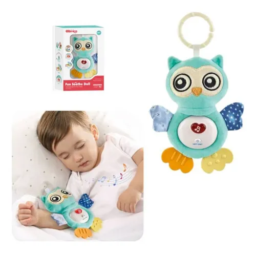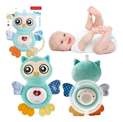 El compañero perfecto para tu bebé: tierno, suave y lleno de sorpresas. Este adorable búho combina música relajante y luces suaves para estimular y entretener, mientras que sus partes de silicón libre de BPA funcionan como un práctico mordedor que alivia las encías.