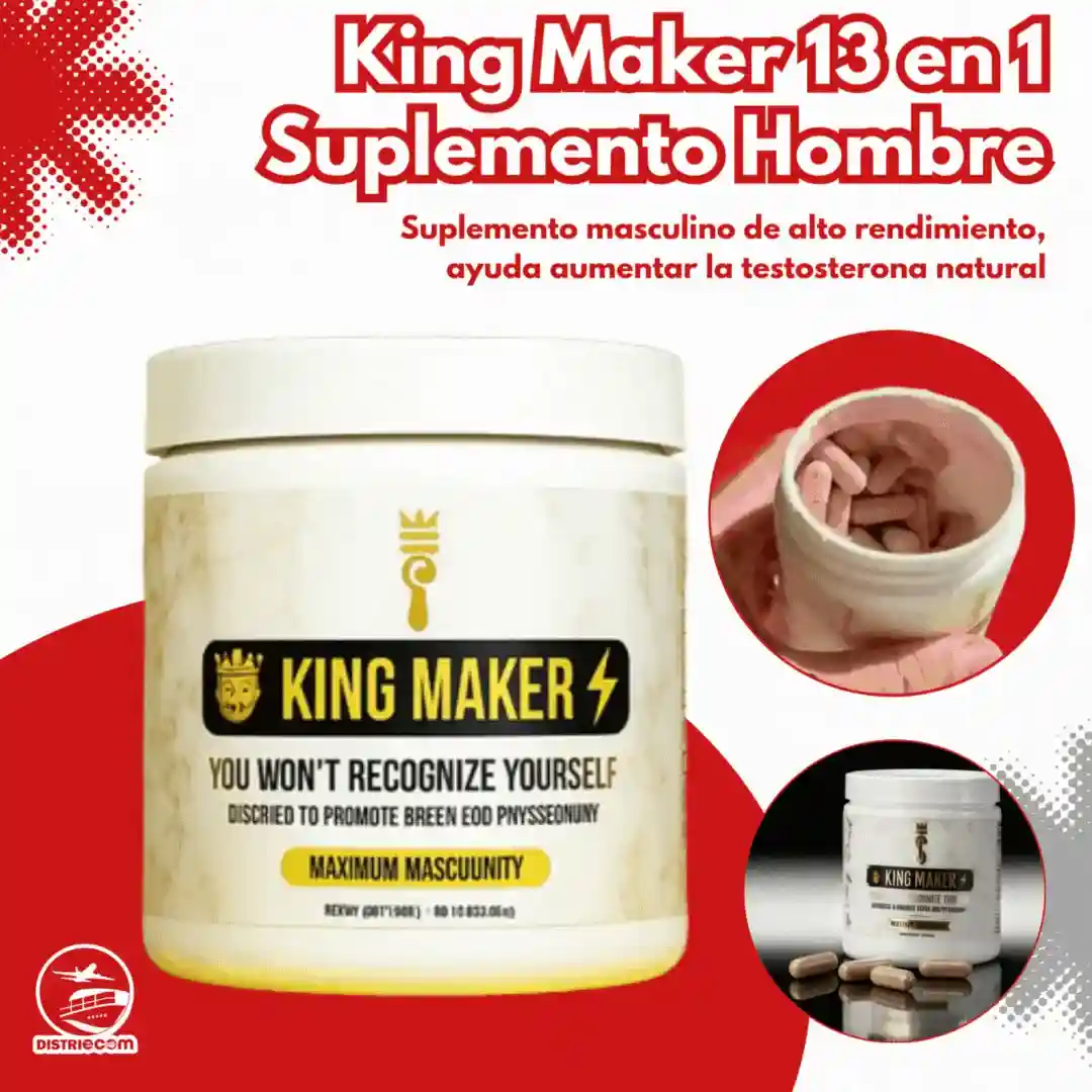 King Maker 13 en 1 combina ingredientes naturales que aumentan la testosterona, la resistencia física y el enfoque mental, brindándote la potencia que necesitas día tras día.