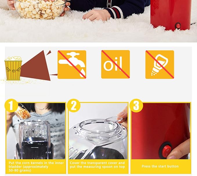 Cómo operar: Primero conecte la alimentación, ponga los ingredientes y la crema, presione el interruptor para comenzar a trabajar, y traiga palomitas de maíz deliciosas y saludables.