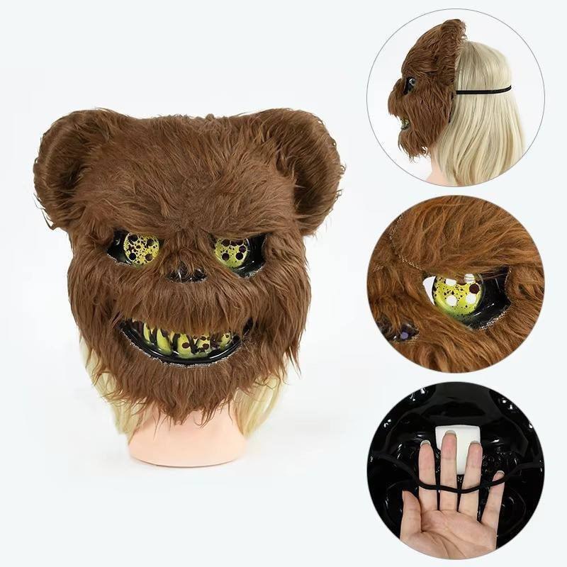Mascara de OsoDivertida mascara escalofriante y divertida para Halloween Mascara en tendencia con luces led para mayor fantasía Funciona con pilas no incluidas. Disponible en colore Chafé y Negro
