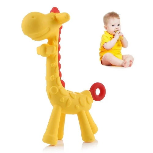 ¡La mejor compañía para tu pequeño en la etapa de dentición! 💛 Este mordedor con forma de jirafita está hecho de silicón suave, libre de BPA y completamente seguro, ideal para que tu bebé lo pueda llevar a su boquita sin riesgos.