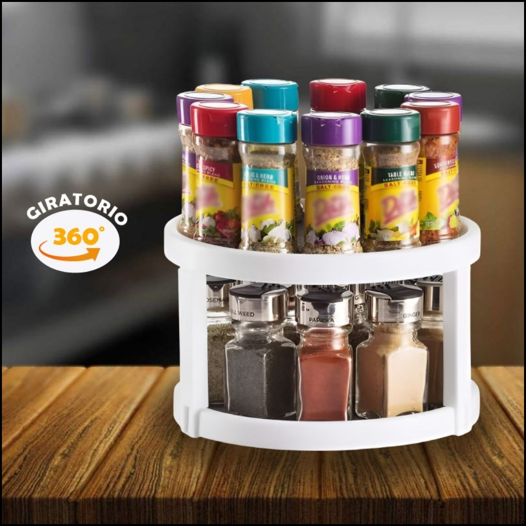 Organizador de Especias Redondo 2 Niveles - ¡Organización y Acceso Fácil en Tu Cocina!