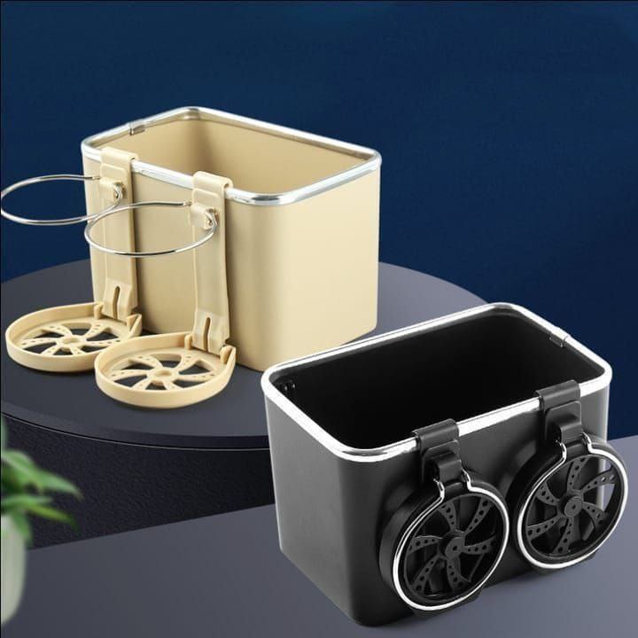 Doble Función: Combina un compartimento de almacenamiento espacioso para guardar tu teléfono, cartera, llaves, monedas u otros pequeños objetos, con uno o dos soportes plegables para bebidas.