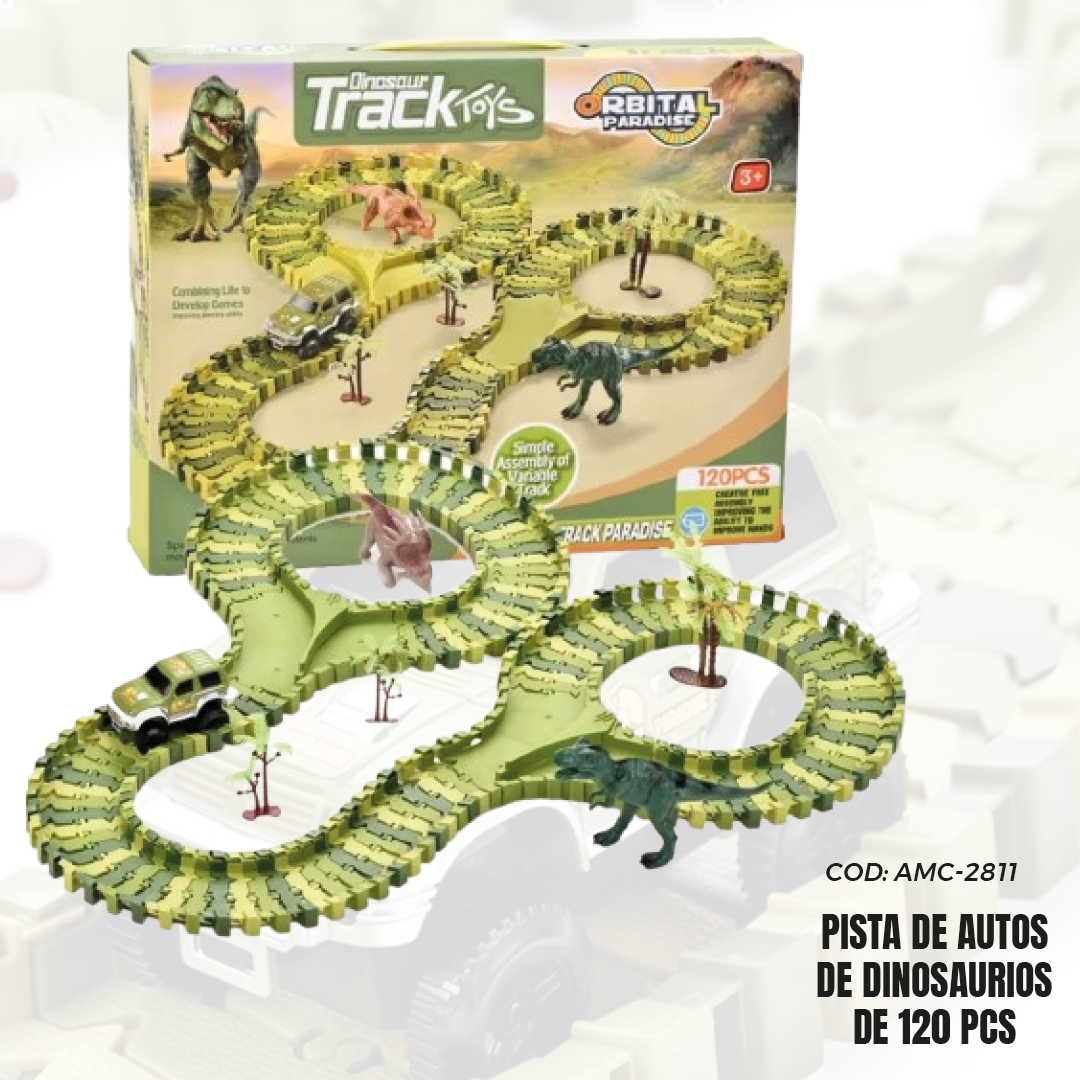 Pista de autos de dinosaurios de 120 pcs 🦖🏎️