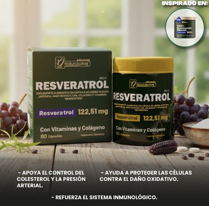 🔬 Beneficios clave: ✅ Eleva los niveles de NAD+ para mejorar la producción de energía celular ✅ Poder antioxidante del Resveratrol que combate el envejecimiento prematuro ✅ Favorece la función cognitiva: enfoque, memoria y claridad mental ✅ Aumenta la resistencia física y reduce la fatiga ✅ Tecnología liposomal: mejor absorción, mayor efectividad