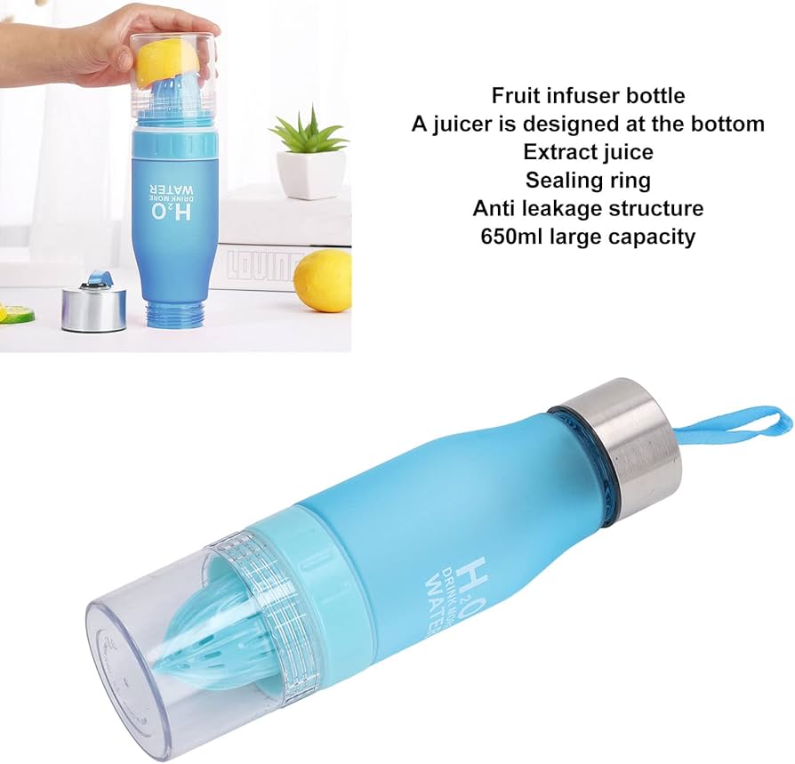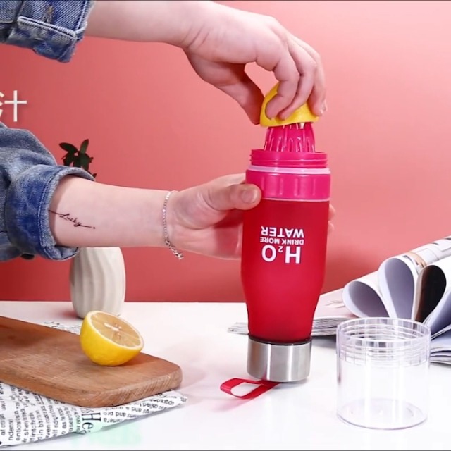 ¿Cómo funciona? sirve como tomatodo o a la vez puede usarlo como exprimidor y disfrutar de su bebida favorita, no necesita instalación, agregue fruta fresca al compartimento central de la botella. Infundir su agua con fruta puede ayudar a hidratar, suprimir el apetito y quemar grasa.