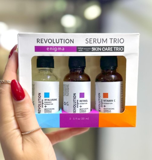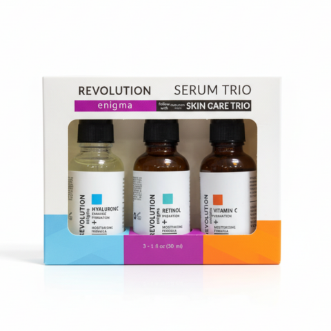Descubre el poder del cuidado facial con el juego 3 en 1 de sueros faciales Revolution, una fórmula pensada para transformar tu piel desde el primer uso. Este set reúne tres aliados imprescindibles: Retinol, Ácido Hialurónico y Vitamina C, diseñados para combatir los signos de la edad, hidratar profundamente y devolver luminosidad al rostro. Cada suero aporta beneficios únicos y, juntos, logran un tratamiento completo, visible y duradero.