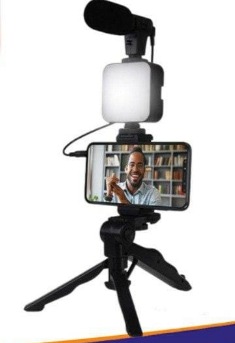 🎥🎤💡 Trípode con Micrófono y Luz LED para celular, listo para que tus videos brillen y tu voz se escuche perfecta 😎